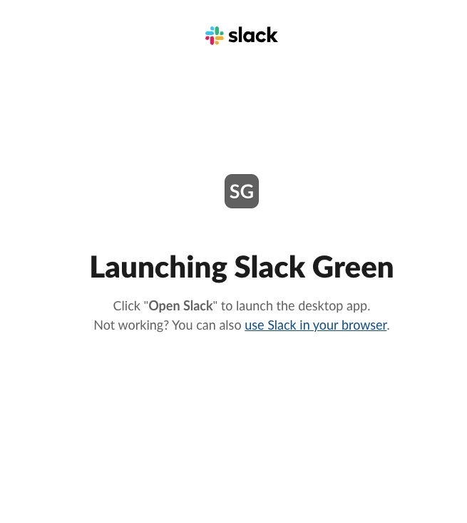 Go to slack.green and sign in with your Google account or email. If you don't have an account yet, the signup takes about 10 seconds.