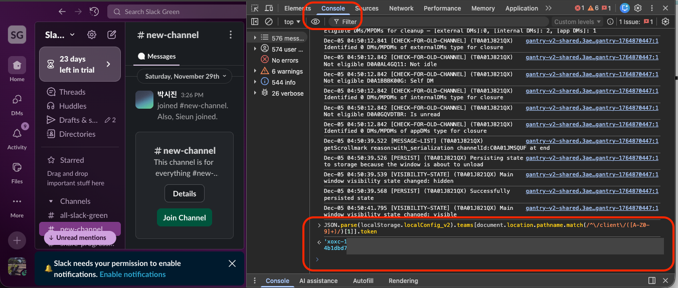 Get the xoxc token